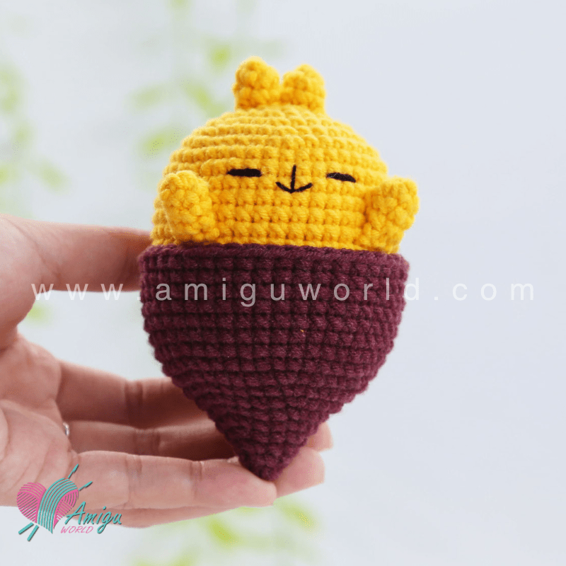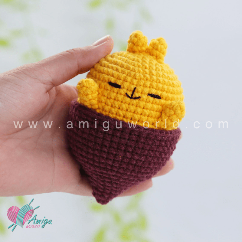 Yay! You’ve just finished crocheting your own Sweet Potato Molang, and it’s absolutely deliciously adorable! Give your chubby little friend a soft squish and a proud smile – you’ve turned yarn into magic! Don’t forget to snap a photo and share your creation with fellow crafters. Happy stitching!